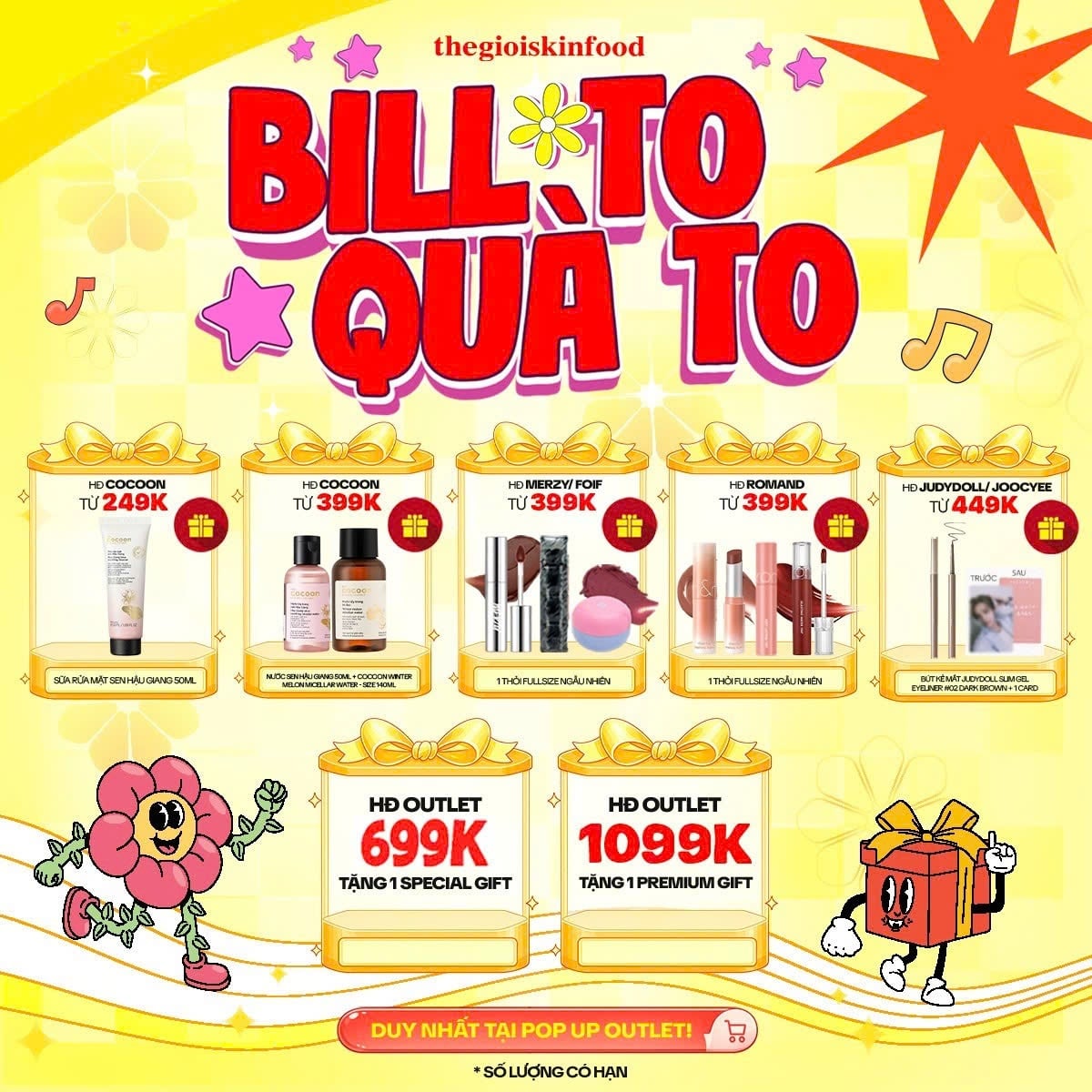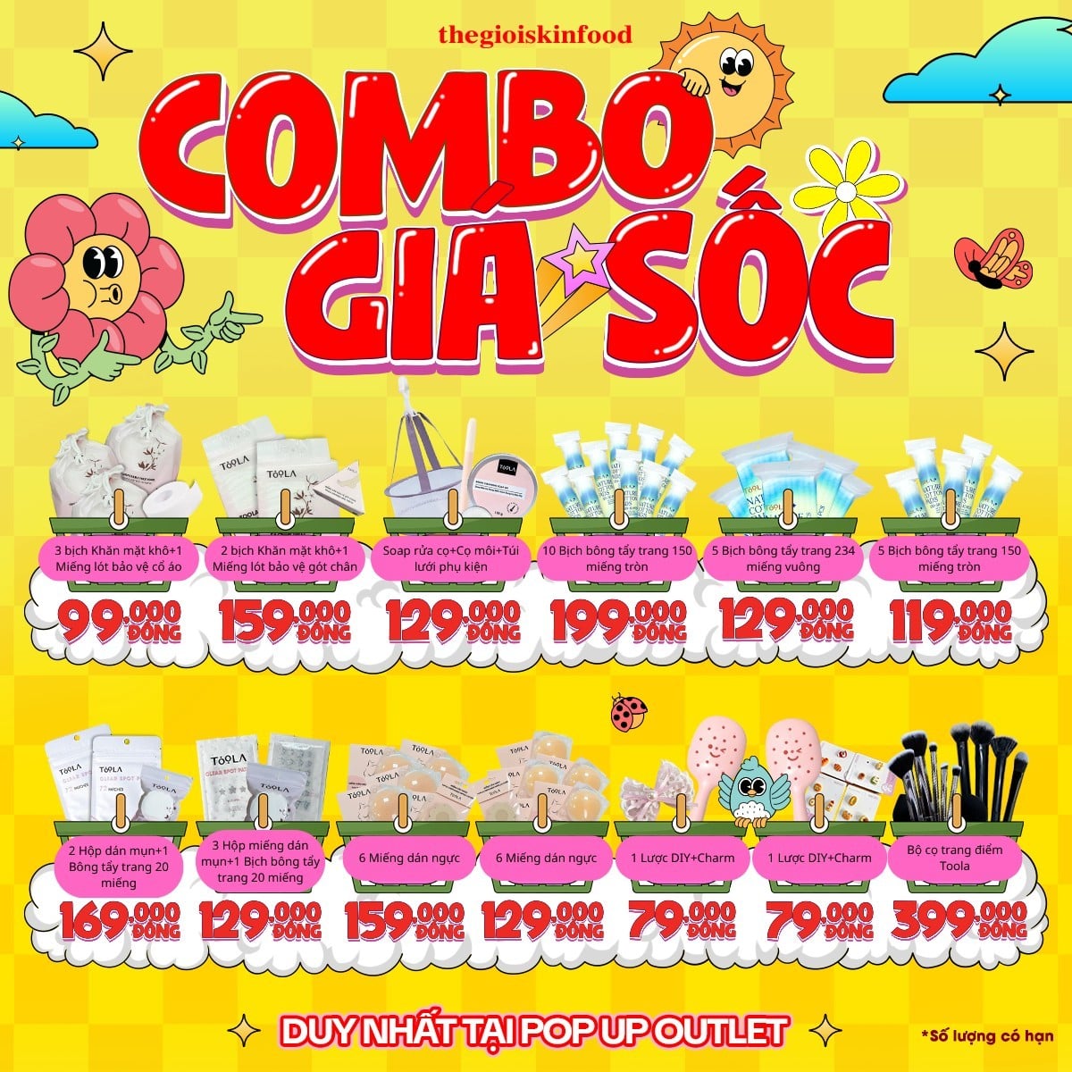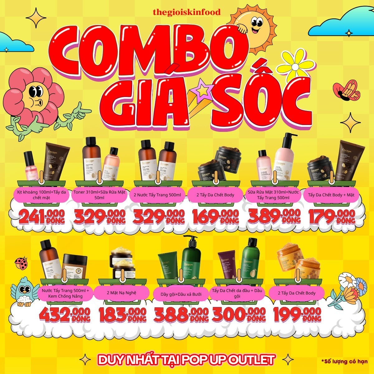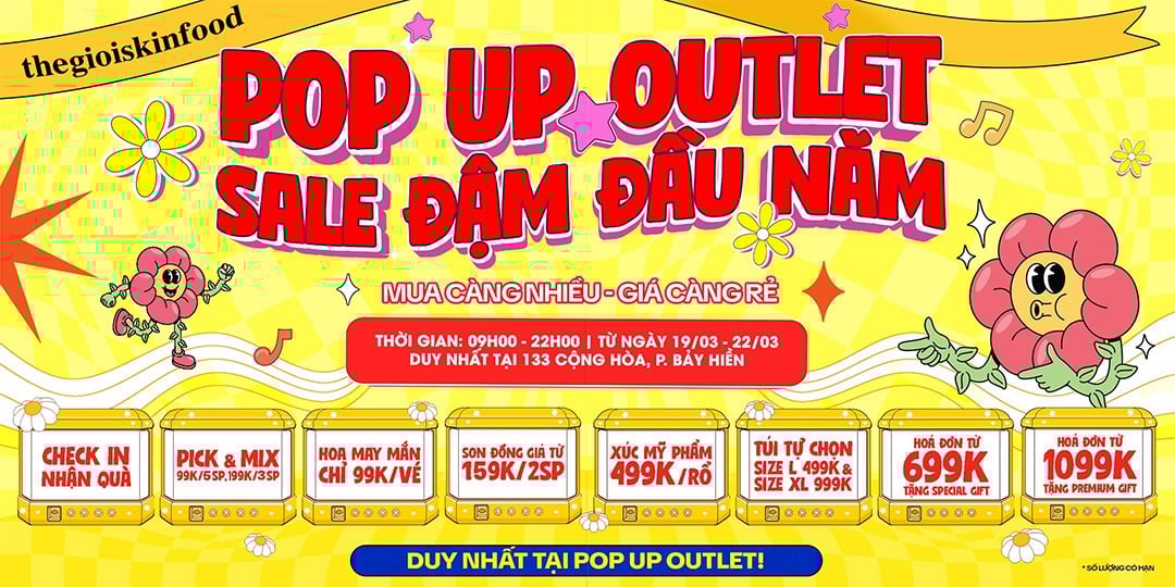Hỡi các tín đồ săn sale của Thế Giới SkinFood! POP-UP Outlet đã quay trở lại rồi đây, hãy điểm qua các chương trình có trong đợt này nhé và các quà tặng hấp dẫn khi mua hóa đơn.