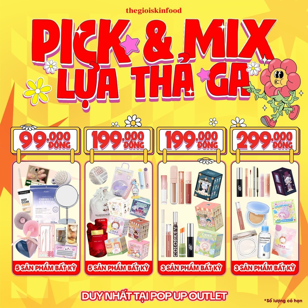 - Đừng để những mức giá niêm yết làm bạn chần chừ! Với Pick & Mix lựa chọn mỹ phẩm thả ga, bạn chính là người quyết định giỏ hàng của mình. Quy tắc cực đơn giản: Cứ gom đủ số lượng - Nhận ngay mức giá "hủy diệt"!