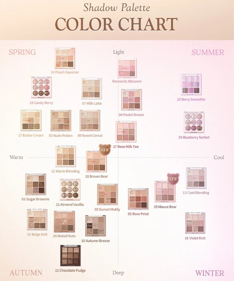 #20 Blueberry Sorbet - Tông màu hồng ngả tím lạnh: Một bảng phấn mắt gồm 9 tông màu hồng ngả tím lạnh hoàn hảo cho tone da lạnh, lấy cảm hứng từ sự mềm mại và ngọt ngào của viên kem việt quất tươi tan chảy, mang đến vẻ đẹp thanh lịch, tinh tế và hiện đại