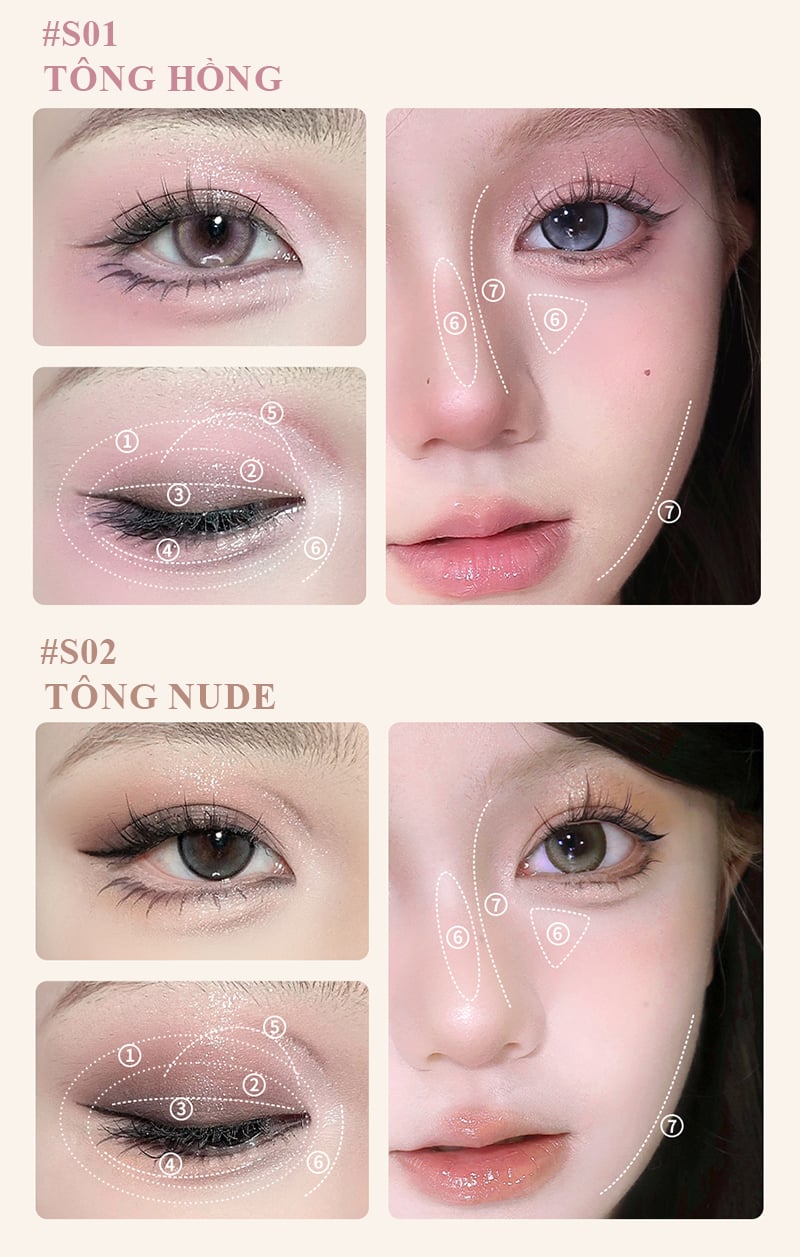 Lên màu chuẩn, dễ tán màu (blend), không vón cục. Ô nhũ bắt sáng đa chiều, tạo hiệu ứng long lanh.