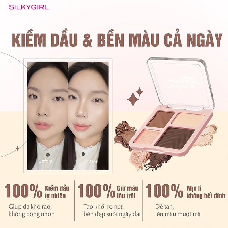 2. Ưu điểm của Bảng Tạo Khối Và Bắt Sáng Đa Năng Silkygirl Contour & Highlight Palette