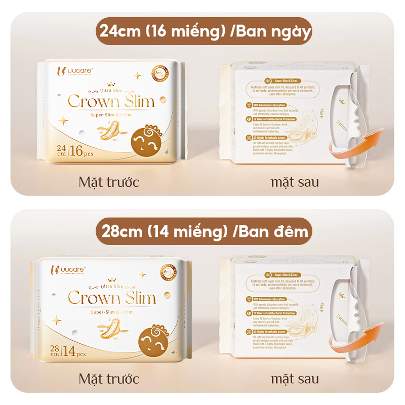 Tên sản phẩm: Băng Vệ Sinh UUcare Siêu Mỏng 0.07cm Kháng Khuẩn Siêu Thấm Crown Slim Day