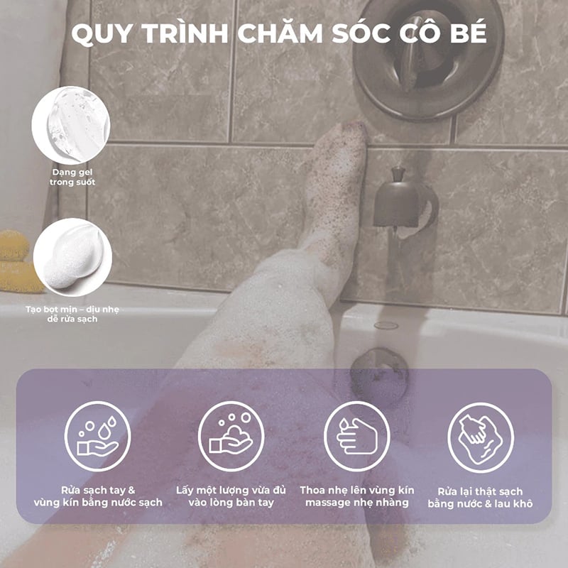 Lấy một lượng gel vừa đủ vào lòng bàn tay tay, tạo bọt và rửa nhẹ nhàng vùng kín.