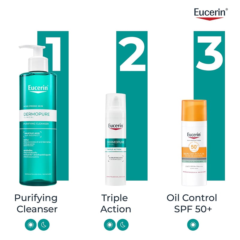 Sữa Rửa Mặt Dạng Gel Kiềm Dầu, Hỗ Trợ Giảm Mụn Eucerin Acne-Oil Control Pro Acne Solution Cleansing Gel là sữa rửa mặt thuộc bộ sản phẩm Pro Acne chuyên dụng cho da dầu, mụn chứa 6% Ampho-Tenside chất hoạt động bề mặt da nhẹ nhàng kết hợp với thành phần chính bao gồm thành phần Salicylic Acid + Citric Acid giúp làm sạch được cả dầu thừa, bã nhờn đang tắc nghẽn trong nang lông đồng thời ngừa mụn hiệu quả thuộc thương hiệu dược mỹ phẩm Eucerin đến từ Đức.