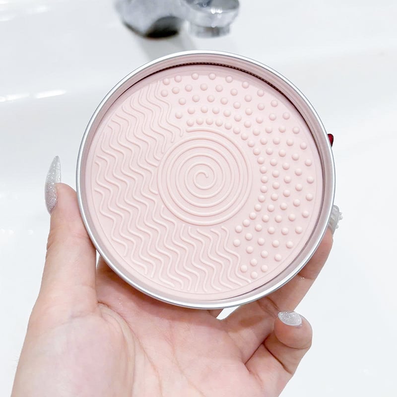 Miếng rửa cọ silicone có thiết kế các gai nhỏ với nhiều kích cỡ khác nhau giúp tăng ma sát làm sạch sâu các cặn phấn, kem nền bám trên lông cọ và giảm tình trạng rụng hoặc xơ rối lông cọ do lực tay trực tiếp.Chất liệu silicone không thấm nước và nhanh chóng khô ráo sau khi sử dụng, không tích tụ vi khuẩn.