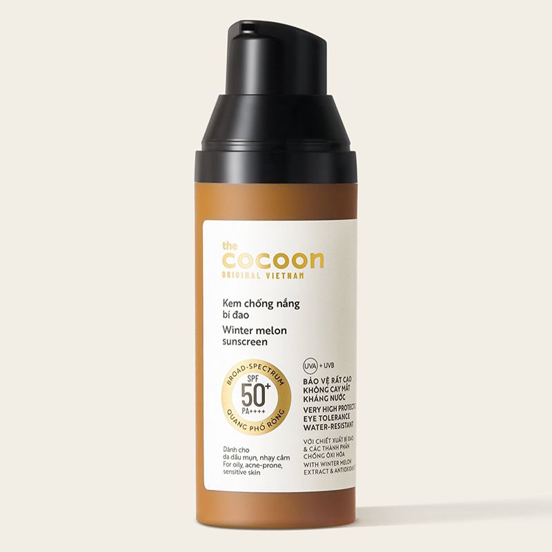 Tên sản phẩm: Kem Chống Nắng Bí Đao Quang Phổ Rộng Dành Cho Da Dầu, Nhạy Cảm Cocoon Winter Melon Sunscreen SPF50+ PA++++