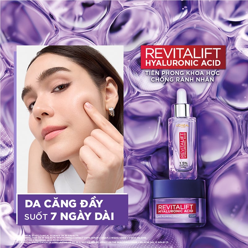 Kem Dưỡng Ban Đêm L'oreal Hỗ Trợ Ngăn Lão Hóa Da Paris Revitalift Hyaluronic Acid Line Plumping Dream Cream Night là kem dưỡng thuộc thương hiệu L'Oreal. Với công nghệ Long-Lasting HA kết hợp 3 loại Hyaluronic Acid (Macro, Micro và Micro-Epidermic) giúp cấp ẩm tức thì trên da, đồng thời thẩm thấu sâu các dưỡng chất vào biểu bì để làm đầy các rãnh nhăn từ bên trong và bù đắp lượng HA thiếu hụt trong thời gian khi ngủ, từ đó hạn chế hình thành rãnh nhăn trên da.
