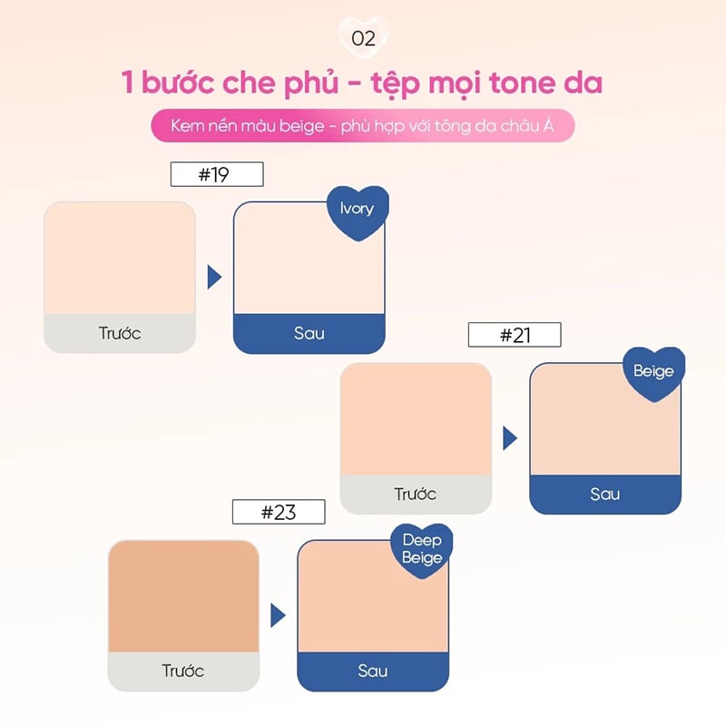 Độ che phủ tốt các khuyết điểm trên da, mang lại làn da đều màu và tươi sáng hơn.
