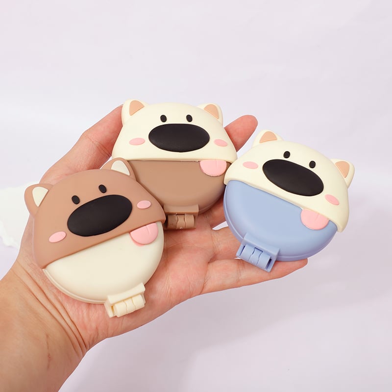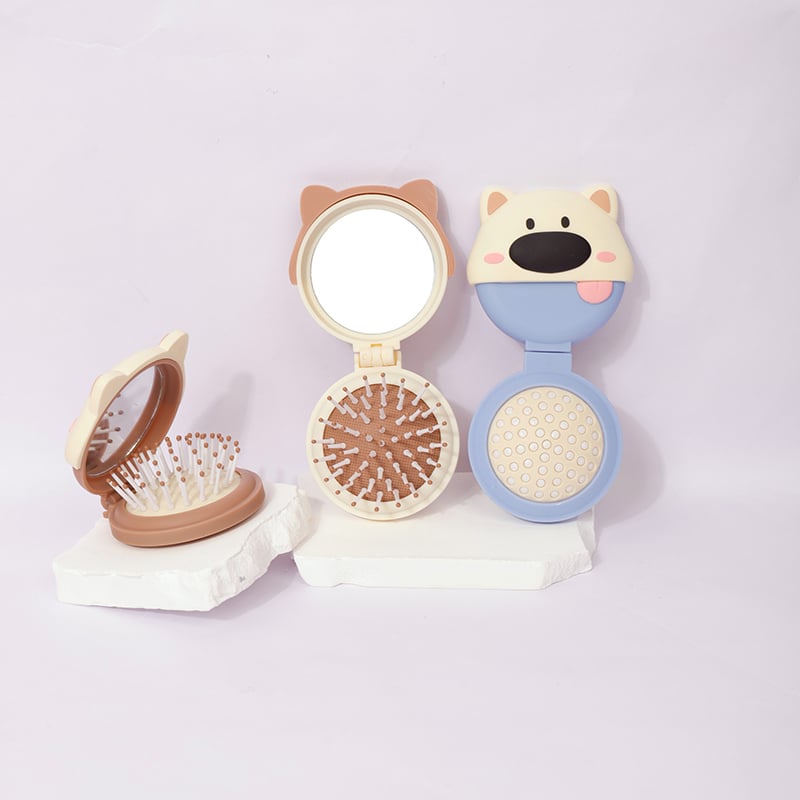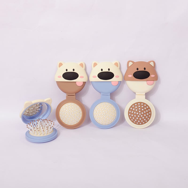 - Lược cầm tay mini với hình dáng chú chó đáng yêu, tích hợp lược massage và gương.