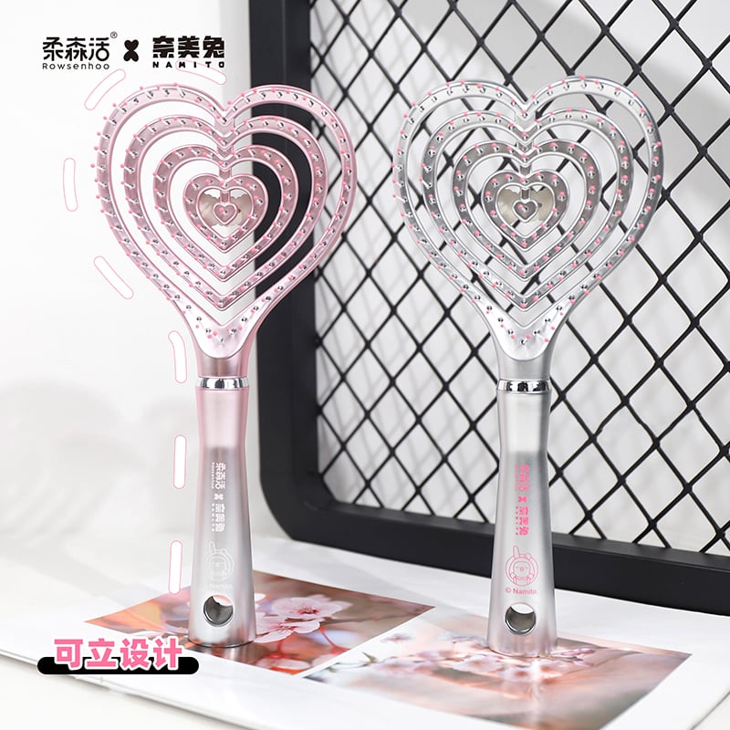 - Thiết kế có hình trái tim xinh xắn. Có tay cầm giúp chải tóc chắc tay.