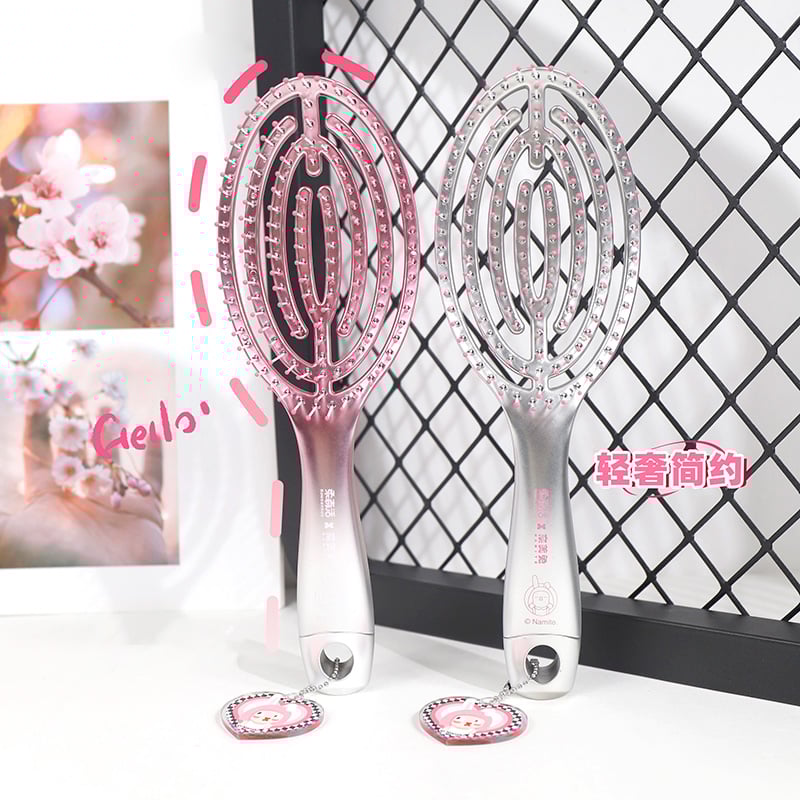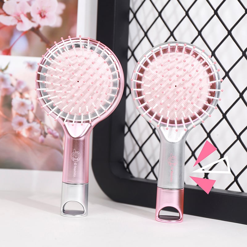 - Thiết kế có hình đính charm dễ thương. Có tay cầm giúp chải tóc chắc tay.