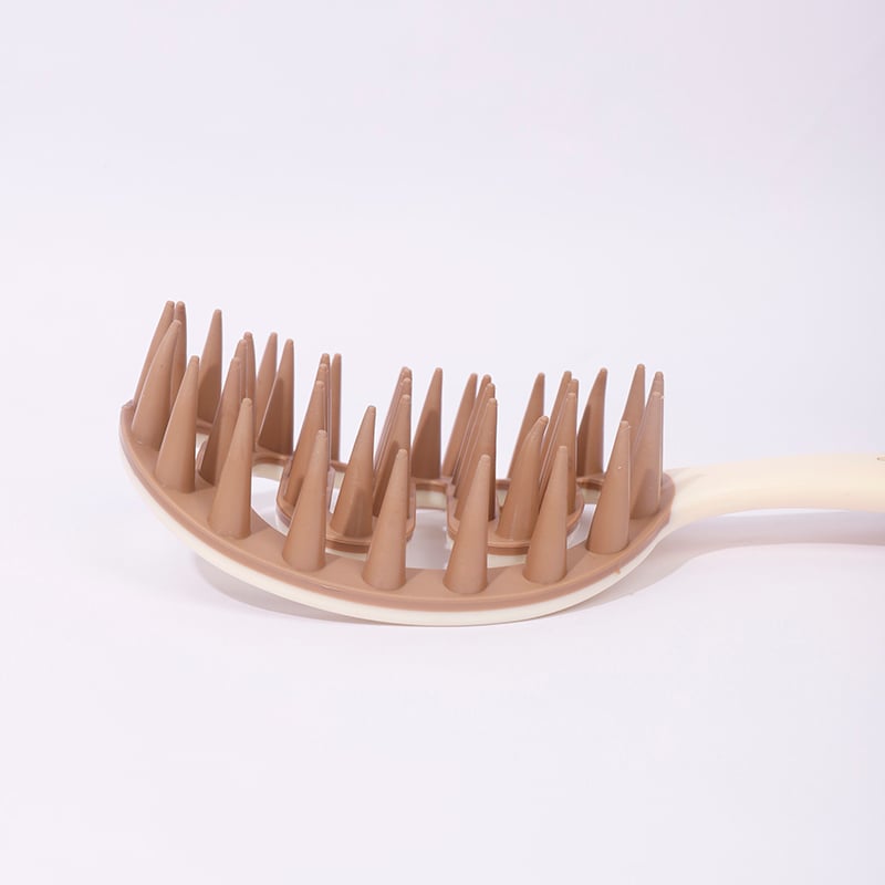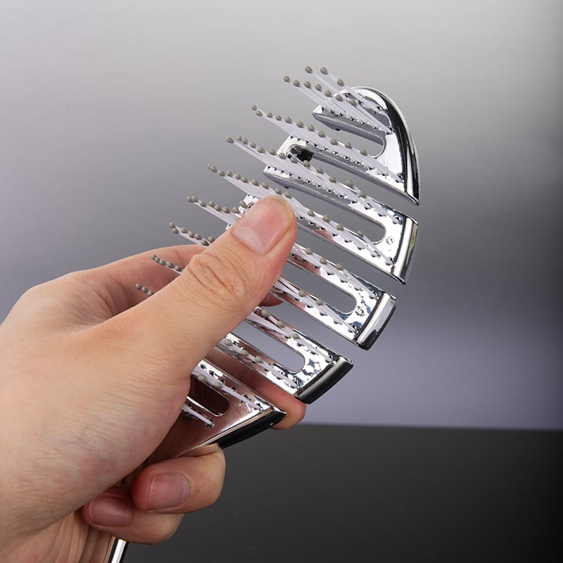- Thiết kế này giúp cho người dùng dễ dàng chải theo mọi hướng mà vẫn ôm sát vào da đầu.