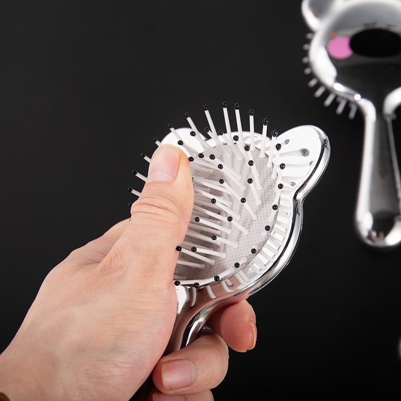 - Thiết kế này giúp hình tai gấu dễ thương. Có tay cầm giúp chải tóc chắc tay.