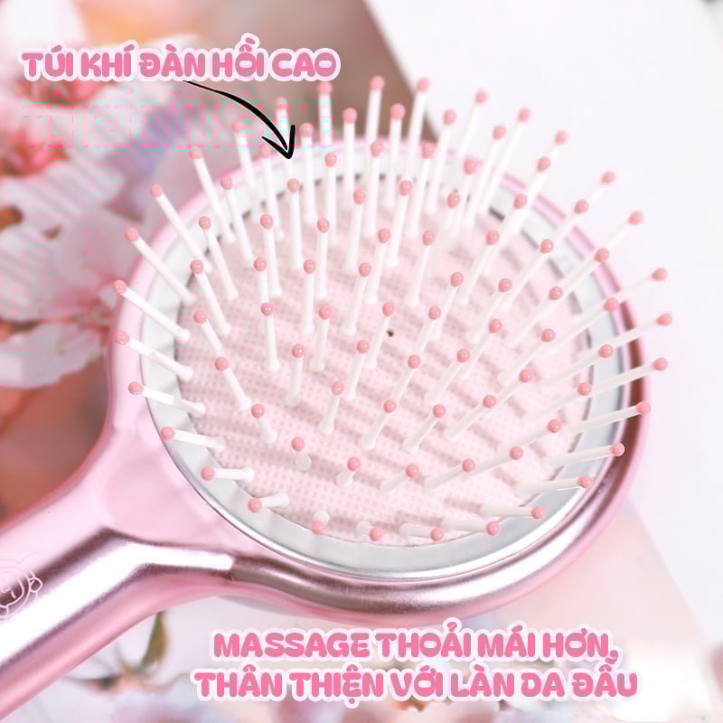 - Đệm khí đàn hồi giúp giảm áp lực lên da đầu khi chải, mang lại cảm giác êm ái, dễ chịu như massage nhẹ.