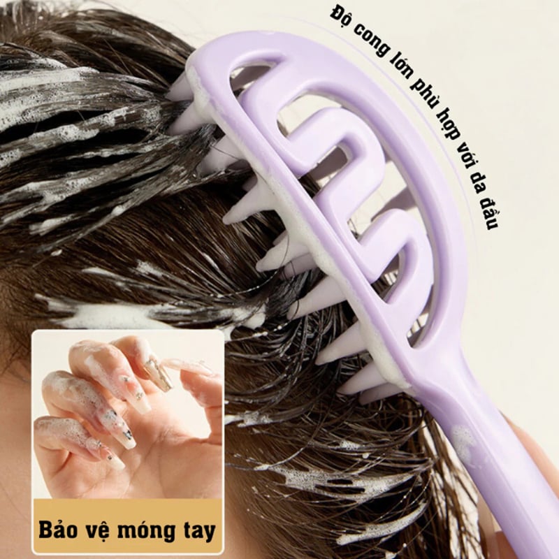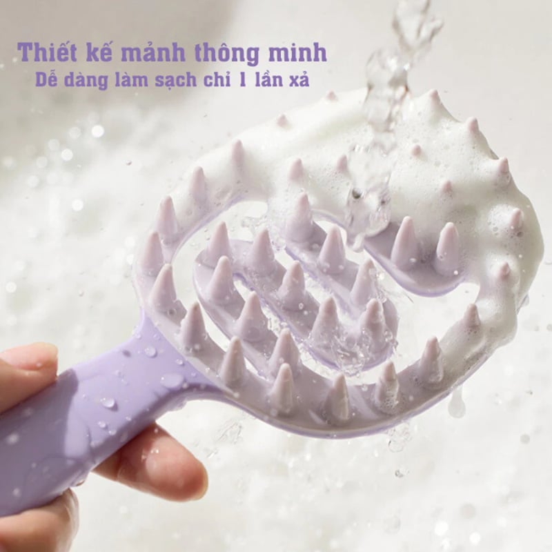 - Đầu silicone mềm mại, lược ôm da đầu giúp làm sạch gàu, giảm rụng tóc, gỡ rối, kích thích mọc tóc