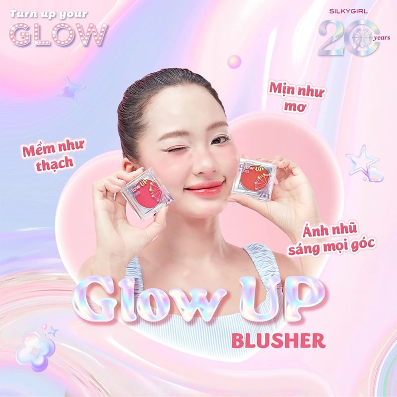 Má Hồng Dạng Kem Silkygirl Mềm Mịn Glow Up Blusher là má hồng của thương hiệu Silkygirl. Với kết cấu má hồng dạng kem có ánh nhũ siêu, dễ dàng tán đều trên da, mang lại hiệu ứng ủng hồng tự nhiên, rạng rỡ. Độ lên màu vừa phải, mà lên chuẩn, có thể layer từ nhẹ nhàng đến đậm nét tùy phong cách trang điểm.