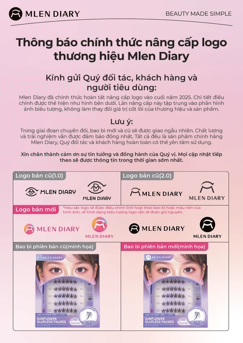 Mẫu mới: 56 cụm mi trên. Đồng thời, mẫu mới sử dụng keo nâng cấp, giúp lớp keo mỏng hơn nhưng vẫn đảm bảo độ bám, mang lại sự thoải mái và dễ chịu hơn cho người sử dụng.