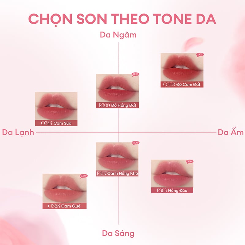 Công nghệ Water to matte có độ bền màu lâu, khó lem trôi, hiệu ứng nước sang mờ lì khi chạm môi