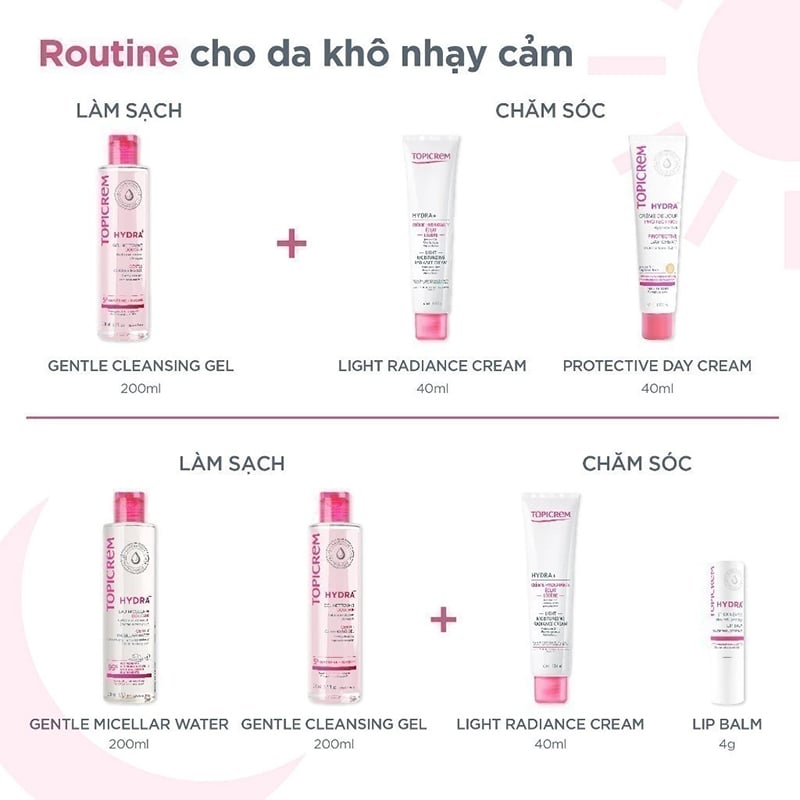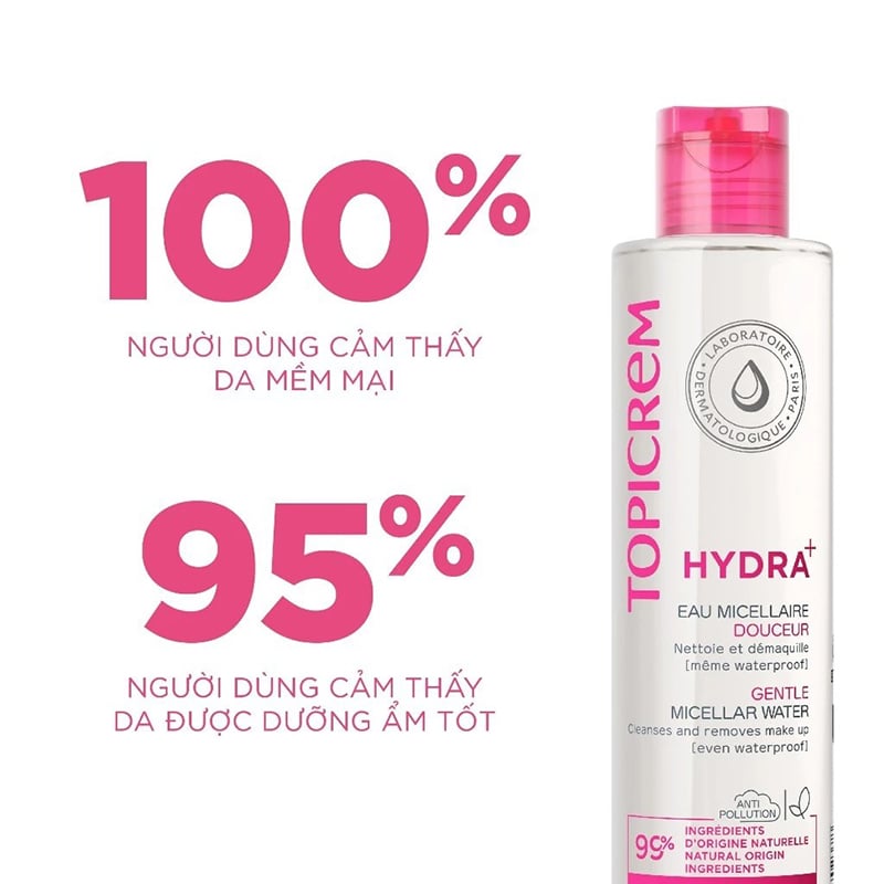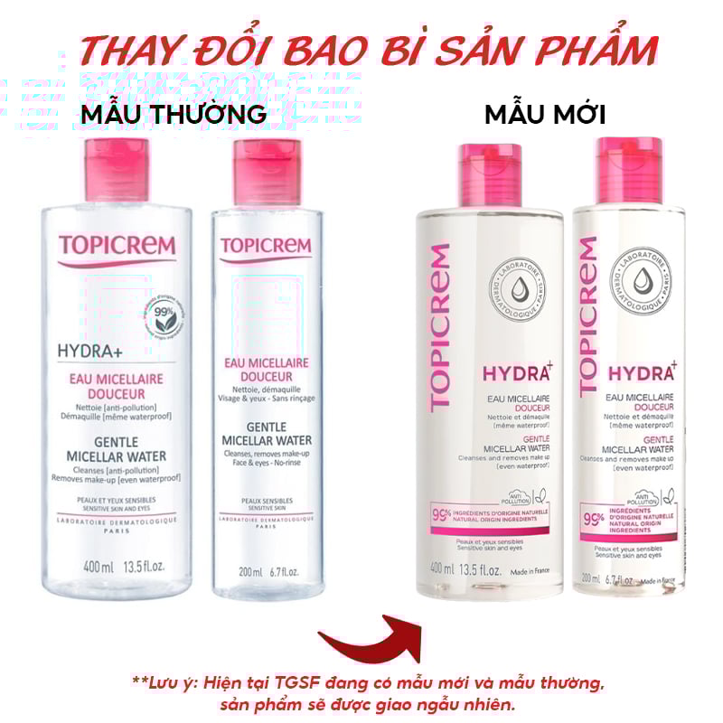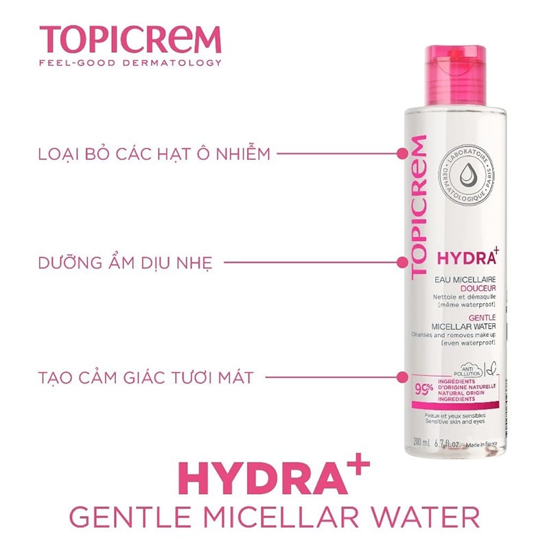 - Nước Tẩy Trang Dành Cho Da Khô & Nhạy Cảm Topicrem Hydra+ Gentle Micellar Water hiện tại đã có mặt tại Thế Giới Skinfood. Thành phần giàu Glycerin với công dụng dưỡng ẩm, cải thiện hàng rảo bảo vệ da, hỗ trợ phục hồi da, duy trì cân bằng độ ẩm trên da giúp da mịn màng thoải mái, làm sạch da mặt và mắt, tẩy sạch lớp trang điểm nhẹ dịu.