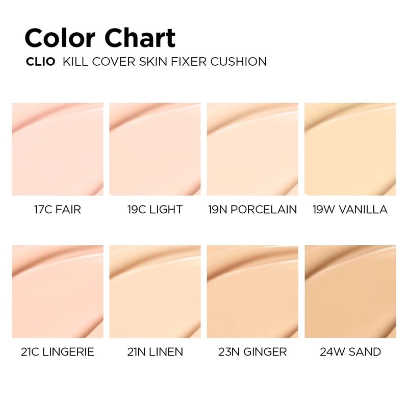 2. Bảng màu của Phấn Nước Kiểm Soát Dầu, Lâu Trôi Clio Kill Cover Skin Fixer Cushion