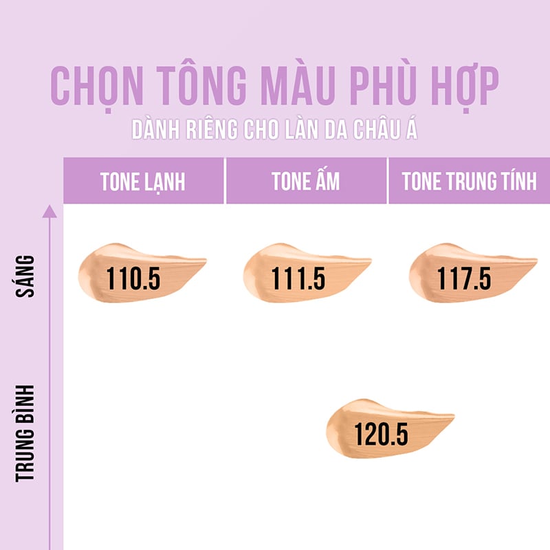 Lưu ý: Số càng nhỏ, tone màu càng thiên sáng.