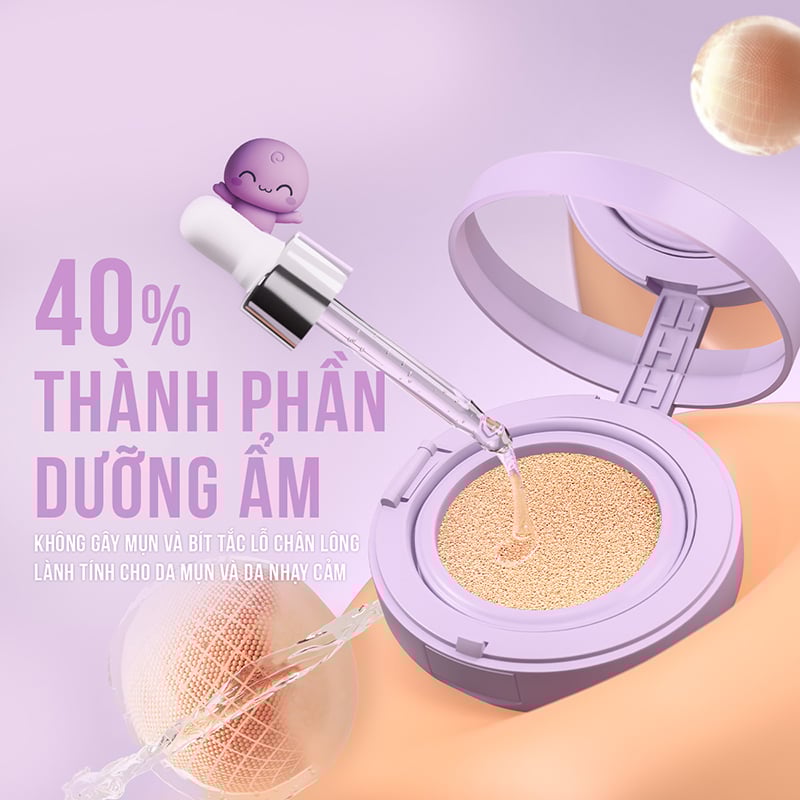 Công nghệ X3 hạt phấn giúp che phủ làm mờ đến 67% lỗ chân lông, cho làn da mịn mướt tự nhiên. Lớp nền dặm 1 lần cho làn da mịn lì, thoáng nhẹ chuẩn “baby vibe” – hiệu ứng Mịn-Matt-Mallow