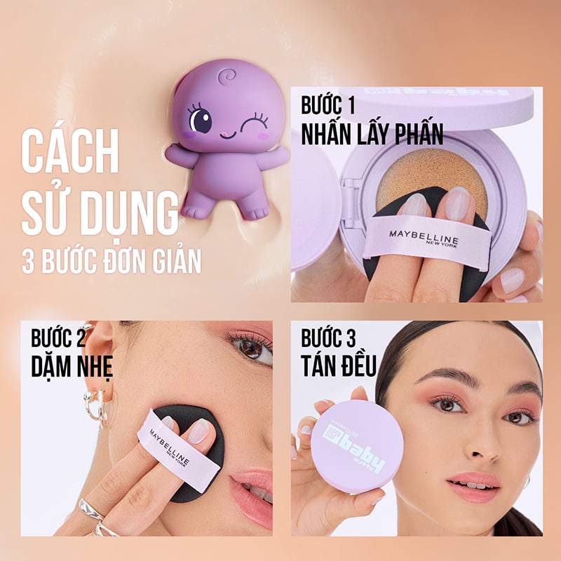 Phấn Nước Maybelline Che Phủ Tốt, Bền Màu New York Super Stay Baby Matte Up To 24H Soft Matte Cushion là kem nền của thương hiệu Maybelline. Công nghệ X3 hạt phấn cho lớp phấn sẽ ôm sát da, che phủ khuyết điểm và giảm dầu thừa, cho lớp nền mịn màng, lâu trôi, hiệu ứng lì đồng thời tạo cảm giác da thông thoáng chuẩn lớp nền lì baby, mềm mịn và thoáng nhẹ suốt cả ngày. Phù hợp với mọi loại da, dùng được cho cả da nhạy cảm.