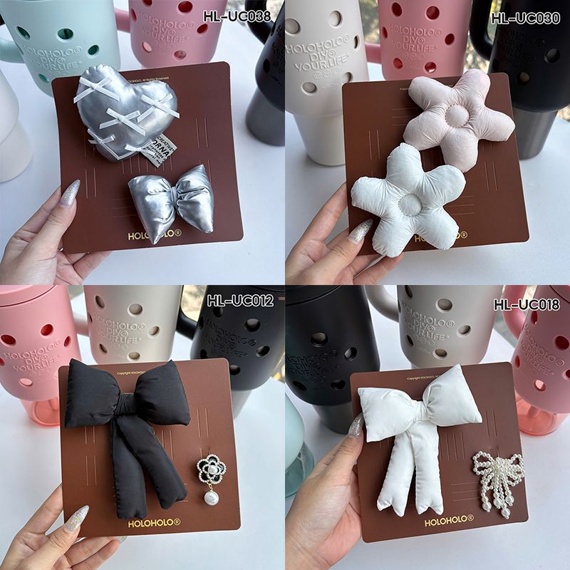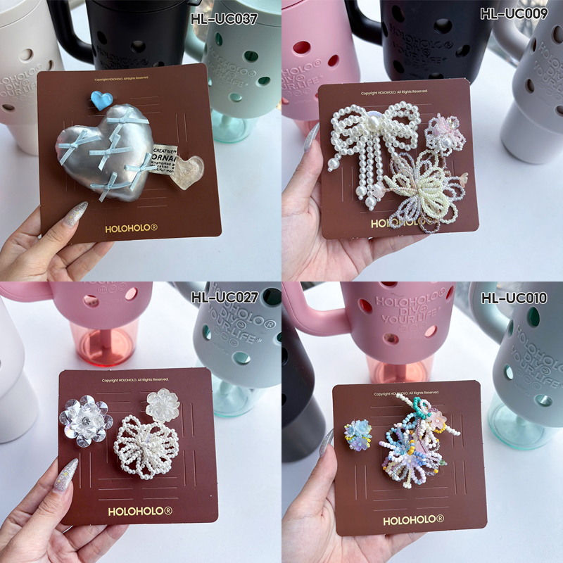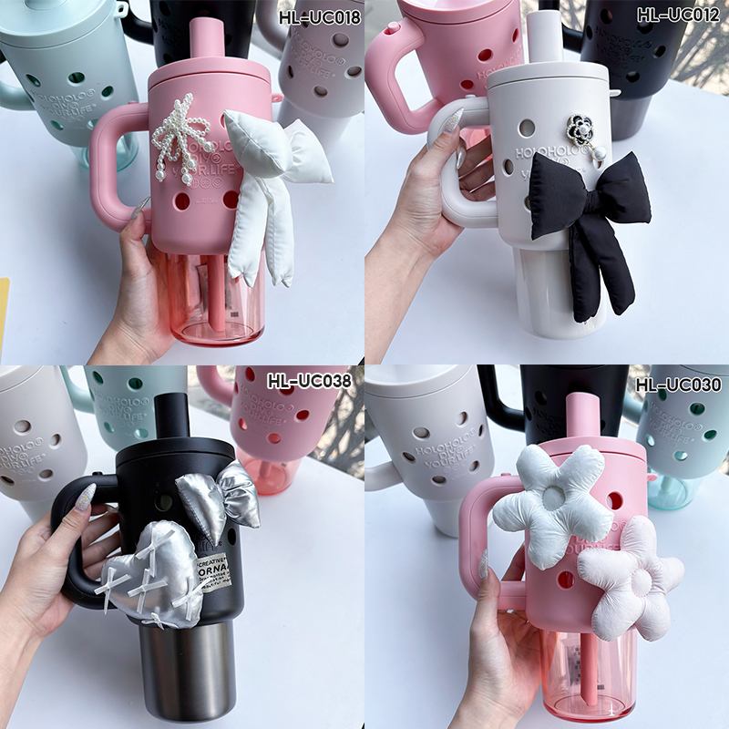 Đa dạng kiểu dáng, mẫu mã: Phụ kiện trang trí bình nước với nhiều set kiểu dáng màu sắc khác nhau như: hình nơ, gấu bông, ngọc trai lấp lánh, bông hoa... giúp bạn thỏa sức chọn lựa.
