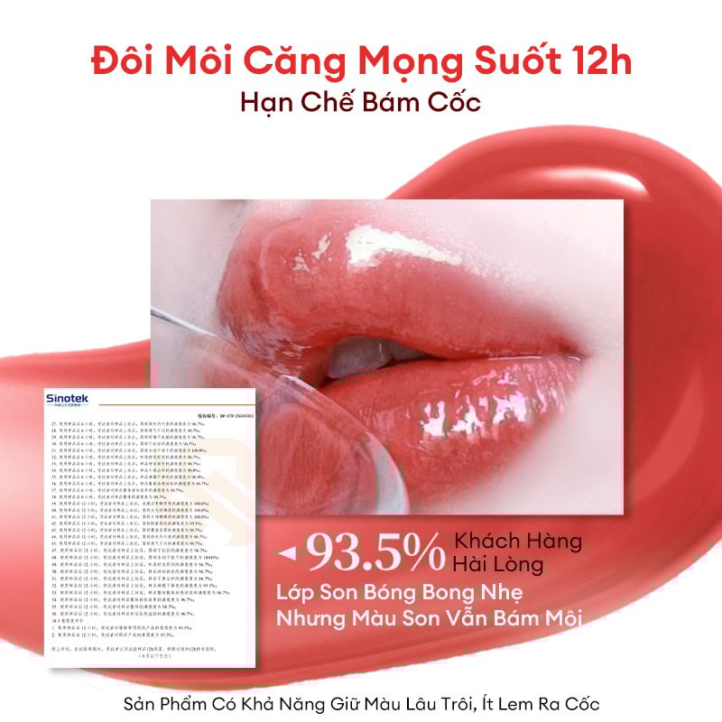 Công thức chứa dưỡng ẩm, cho môi ẩm mịn và hiệu ứng môi bóng mượt trong suốt như thủy tinh.