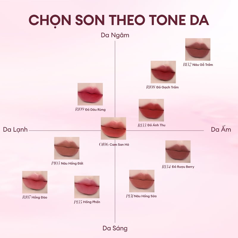 Phù hợp nhiều phong cách: Màu son phù hợp với mọi phong cách và nền da, tôn lên sự tươi tắn, quyến rũ.