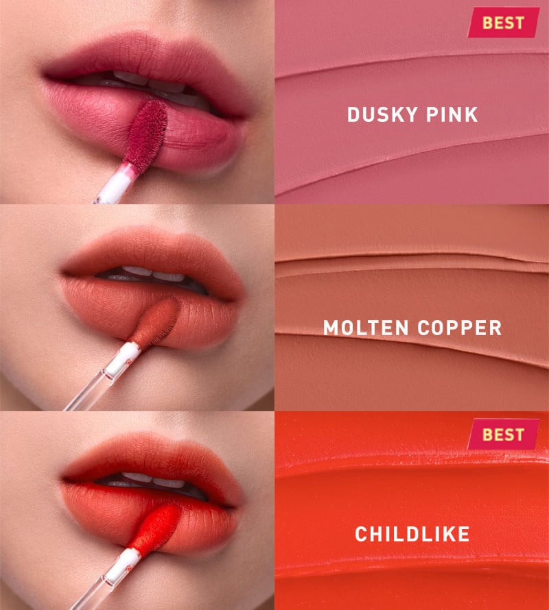 2. Bảng màu của Son Kem Lì 3CE Nhung Lì Velvet Lip Tint Plush