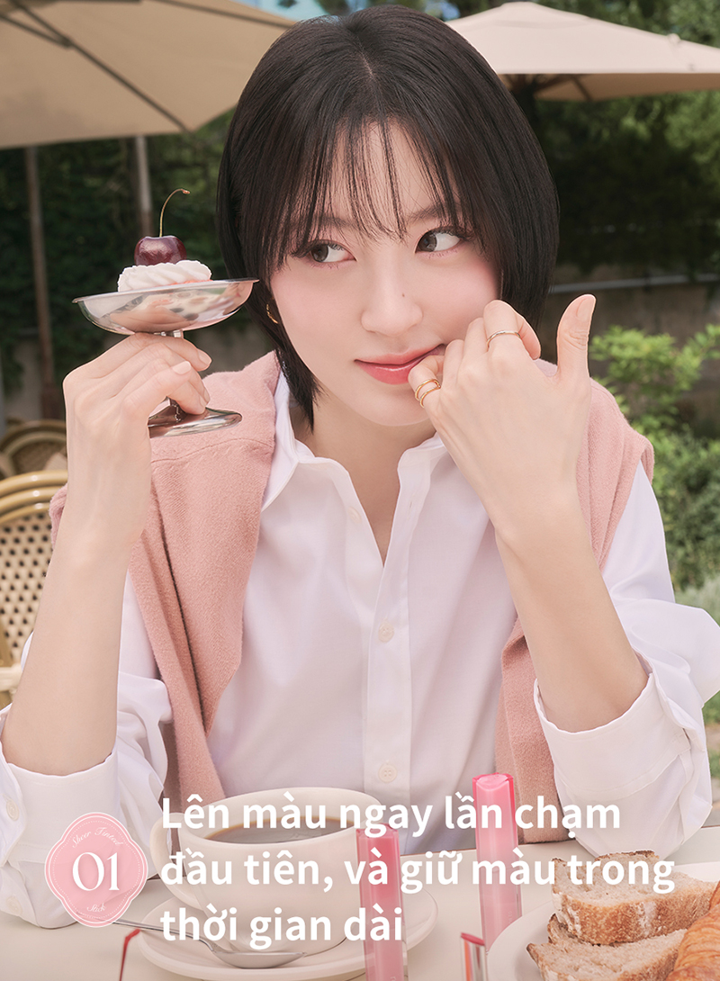 - Son lên môi mềm, căng mọng tựa như bao phủ lớp sương trong trẻo.