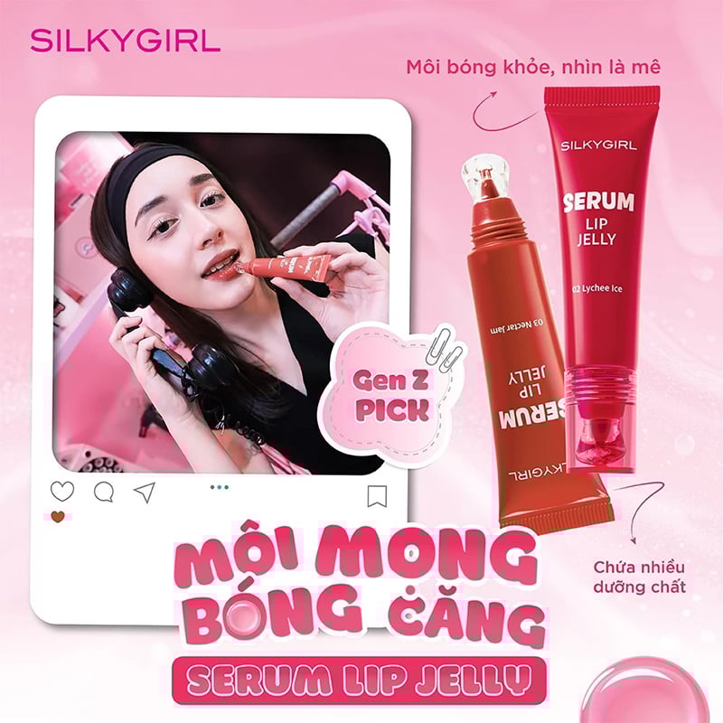 Tên sản phẩm: Son Tint Bóng Silkygirl Lâu Trôi, Cấp Ẩm Serum Lip Jelly