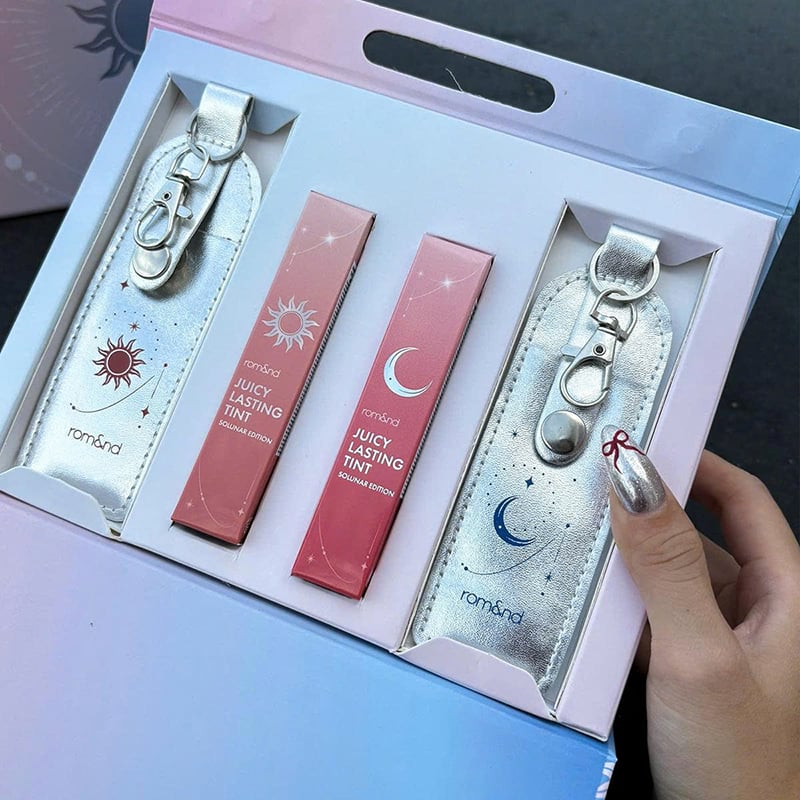 Son Tint Lì Romand Juicy Lasting Tint Solunar Edition có chất son tint thuộc thương hiệu Romand. Nối tiếp thành công màu 23 Nucadamia phiên bản Starry năm 2024 thì năm 2025 cho ra mắt một phiên bản Solunar hoàn toàn mới với những thỏi tint quốc dân của team tone lạnh và team tone ấm. Với lớp bóng trong veo, rạng ngời và độ bóng càng để lâu càng juicy càng trong trẻo.
