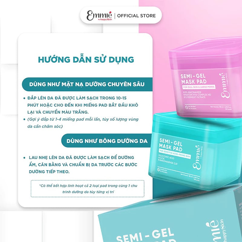Tên sản phẩm: Toner Pad Emmié By Happyskin Làm Dịu Da, Hỗ Trợ Làm Sáng Da, Thu Nhỏ Lỗ Chân Semi-Gel Mask Pad