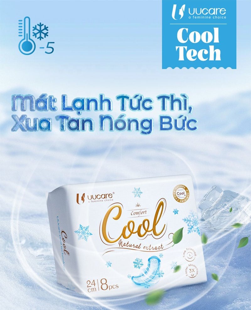 Băng Vệ Sinh Kháng Khuẩn Ngày Và Đêm UUcare Cool Tech là băng vệ sinh với khả năng kháng khuẩn liên tục trong 12 giờ, với công nghệ làm mát tự nhiên và lớp Cotton thoáng khí mang lại cảm giác tươi mát và thoải mái suốt cả ngày thuộc thương hiệu UUcare đến từ Singapore